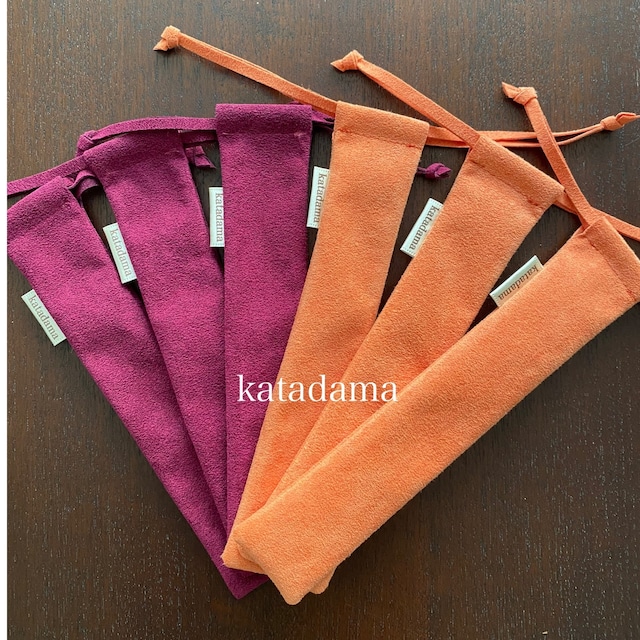 超★大人気!まとめ買いの方多数! 定番リピート商品 【スエード調・音叉ケース<巾着タイプ>】に新色登場! シックなワインカラーの「ボルドー」 爽やかだけど落ち着いた「オレンジ」 スエード調のとても柔らかな生地を使用した、シンプルな音叉ケース。 ケースのゆとりを最小限にした<スリム型>です。 ジャストサイズで巾着型なので、ケースから音叉が飛び出にくくなっており、持ち運びに最適♪ そのまま「音叉ケース」としてもお使いいただけますし、 まとめて収納する音叉ケースの中で、音叉同士がぶつかり傷がつかないようにするための「内袋」としても使用できます。 ※音叉に限らず、サイズが合えば、ペンケースなど他のケースとしてもお使い頂けます。 ~*~*~*~*~*~*~*~*~*~*~ 【ケースサイズ】 幅 約3,5cm / 長さ 約20,5cm ★音叉のサイズ(幅2.5cm/厚み1cm/長さ20cm)がギリギリ入る寸法です。 平たい振動用音叉(幅2.7cm/厚み0.6cm/長さ20cm)も入る寸法となっております。 ※音叉の「羽部分のぐるりの寸法が、約7cmの音叉」ですと、ギリギリ入る寸法です。 ※完成後、上記の音叉が収納できるかのテストはしておりますが、一点一点、多少サイズのバラツキがございます。 ご了承くださいませ。 最初出し入れがきつくても、何度かお使いいただきますと、次第に馴染んでまいります。 ~*~*~*~*~*~*~*~*~ 【色展開・生地の違い】 スエード調音叉ケースは、4色展開(ベージュ・ダークネイビー・新色ボルドー・新色オレンジ)です。 どのお色もスエード調・合成皮革生地ですが、お色により生地が違います。 どちらも柔らかく、張りがある生地となっております。 新色2色(ボルドー、オレンジ)は、ベージュ、ダークネイビーに比べ、ほんの少し、肉厚な生地です。 ※生地違いの為、商品価格が違います。 ベージュ・ダークネイビーは別のページにございます。 【スエード調・音叉ケース<巾着タイプ>】ベージュ・ダークネイビー →https://katadama.thebase.in/items/2609434 ~*~*~*~*~*~*~*~*~*~*~ 【デザイン】 スエード調音叉ケースは、2デザインございます。 ・巾着タイプ ・蓋付きタイプ どちらもスリムタイプです。 お好みでお選びくださいませ。 【スエード調・音叉ケース<巾着/レギュラー>】ベージュ・ダークネイビー →https://katadama.thebase.in/items/3142482 ~*~*~*~*~*~*~*~*~*~*~ 【サイズ展開】 巾着タイプのみ、長さが短いものもございます。 【スエード調・音叉ケース<巾着タイプ/ショート>】 →